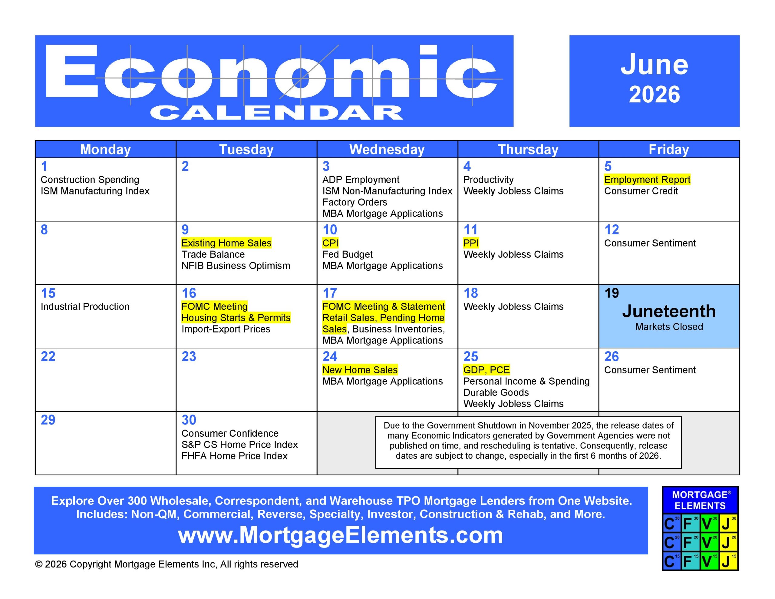 June 2026 Economic Calendar - Mortgage Elements