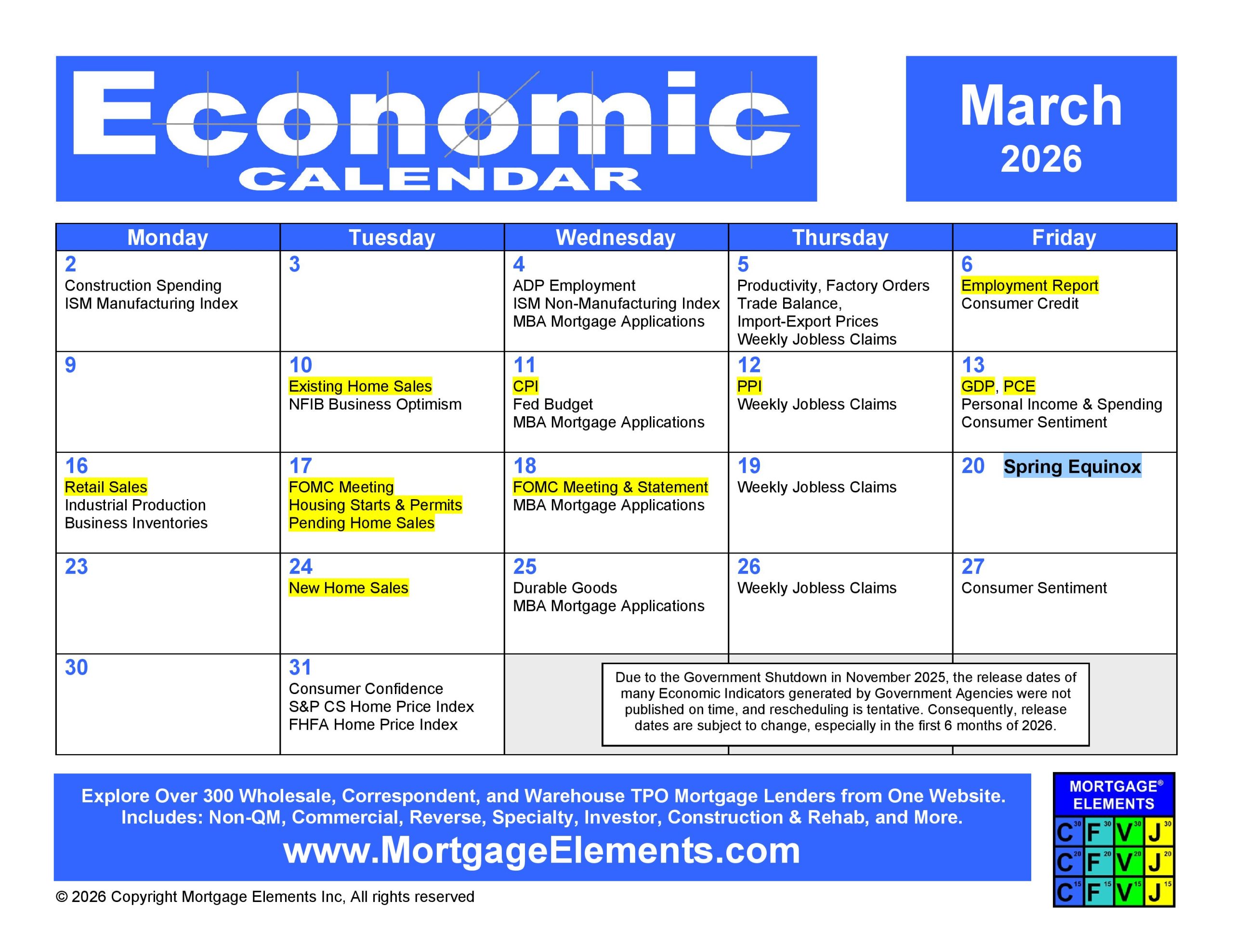 March 2026 Economic Calendar - Mortgage Elements
